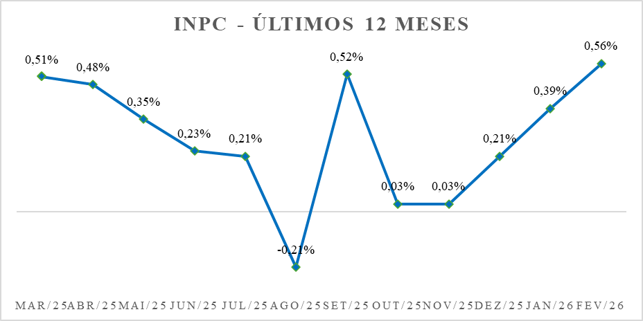 INPC fevereiro/2026: ↑0,56%