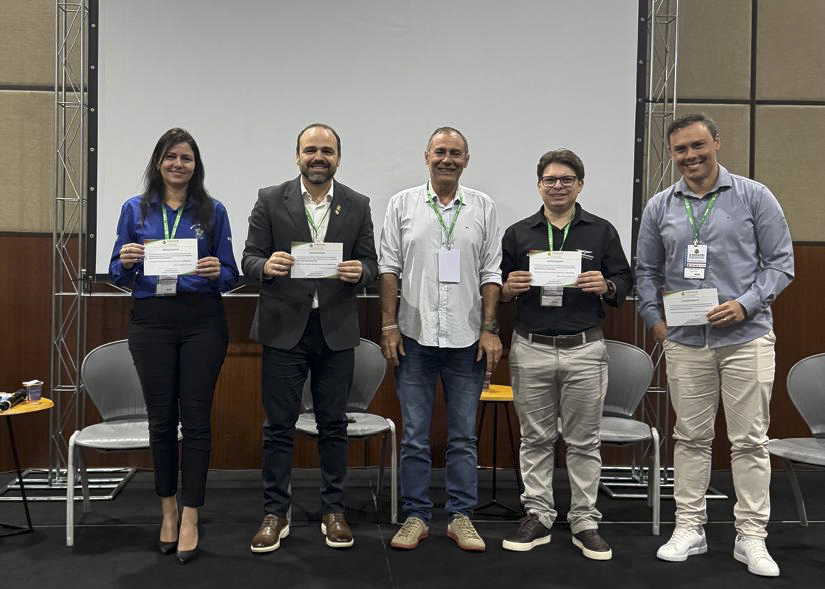 PAINEL: O representante do Sindag (segundo a partir da esq) participou do painel com representantes do Mapa, Idaron, Fapcen e da empresa Vettorize Drones