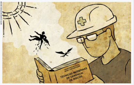 Na sequência temos a figura 04, imagem postada na edição 345 de dezembro de 2020, da revista Proteção, cujo artigo escrito pelo Especialista em Direito Trabalhista, Luís Augusto de Bruin, sob o título “Velhos novos ensinamentos.” trazendo uma reflexão sobre as novas condições de gerenciamento dos riscos, onde a imagem da página, nos demonstra que não temos como negar a estreita ligação entre as condições seguras da atividade aérea e trabalhista.