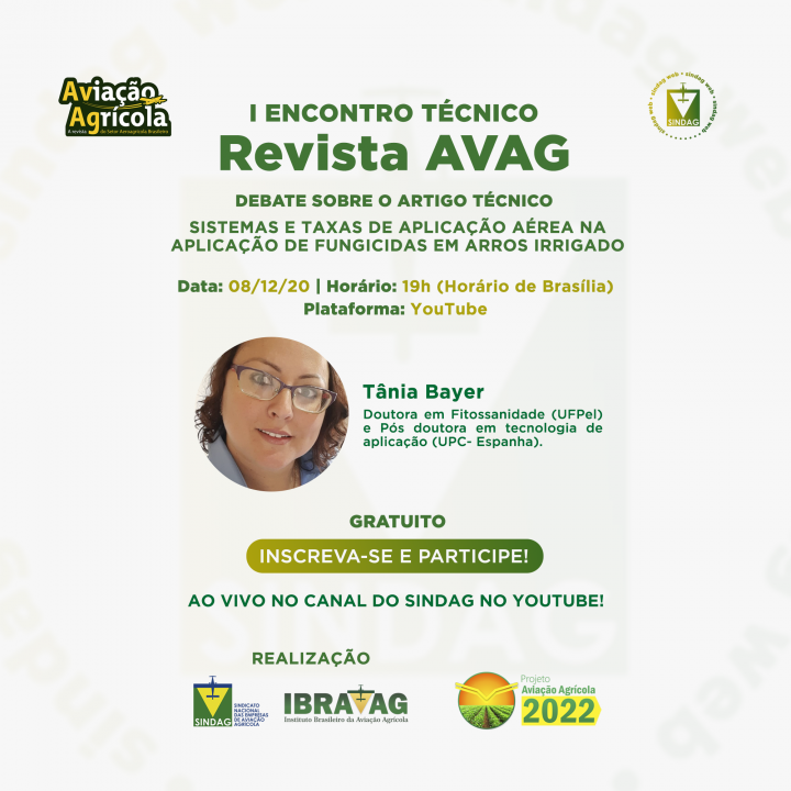 Para o primeiro encontro, a convidada especial será a Dra. Tânia Bayer, que irá discutir o seguinte artigo, publicado por ela e outros pesquisadores na atual edição da revista: “Sistemas e taxas de aplicação aérea na aplicação de fungicidas em arroz irrigado”. Uma excelente oportunidade de aprender mais sobre estes sistemas de aplicação.