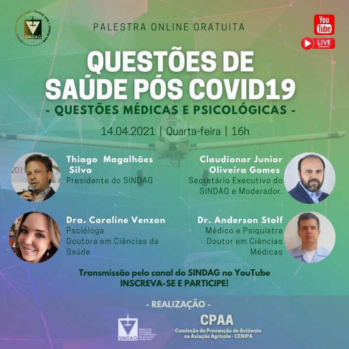 Este evento tem o objetivo de apresentar questões na saúde que estão se manifestando em pilotos, agrônomos e técnicos e diversas pessoas após passarem pelo COVID19, mesmo após o período de isolamento.