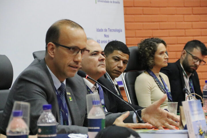 Colle também chamou ao palco o diretor da FAV, José Ricardo Peixoto, e a vice-diretora (e coordenadora do evento), Maísa Joaquim, para receberem suas placas em homenagem pela realização do Fonavagri. No caso de Peixoto, a entrega ficou a cargo do presidente do Ibravag, Júlio Augusto Kämpf. Que, por sua vez, também destacou o protagonismo da UnB com o evento. “Temos atualmente 512 cursos de Agronomia no Brasil. E menos de 5% deles têm a cadeira ou matéria sobre tecnologias aeroagrícolas em seus currículos.”