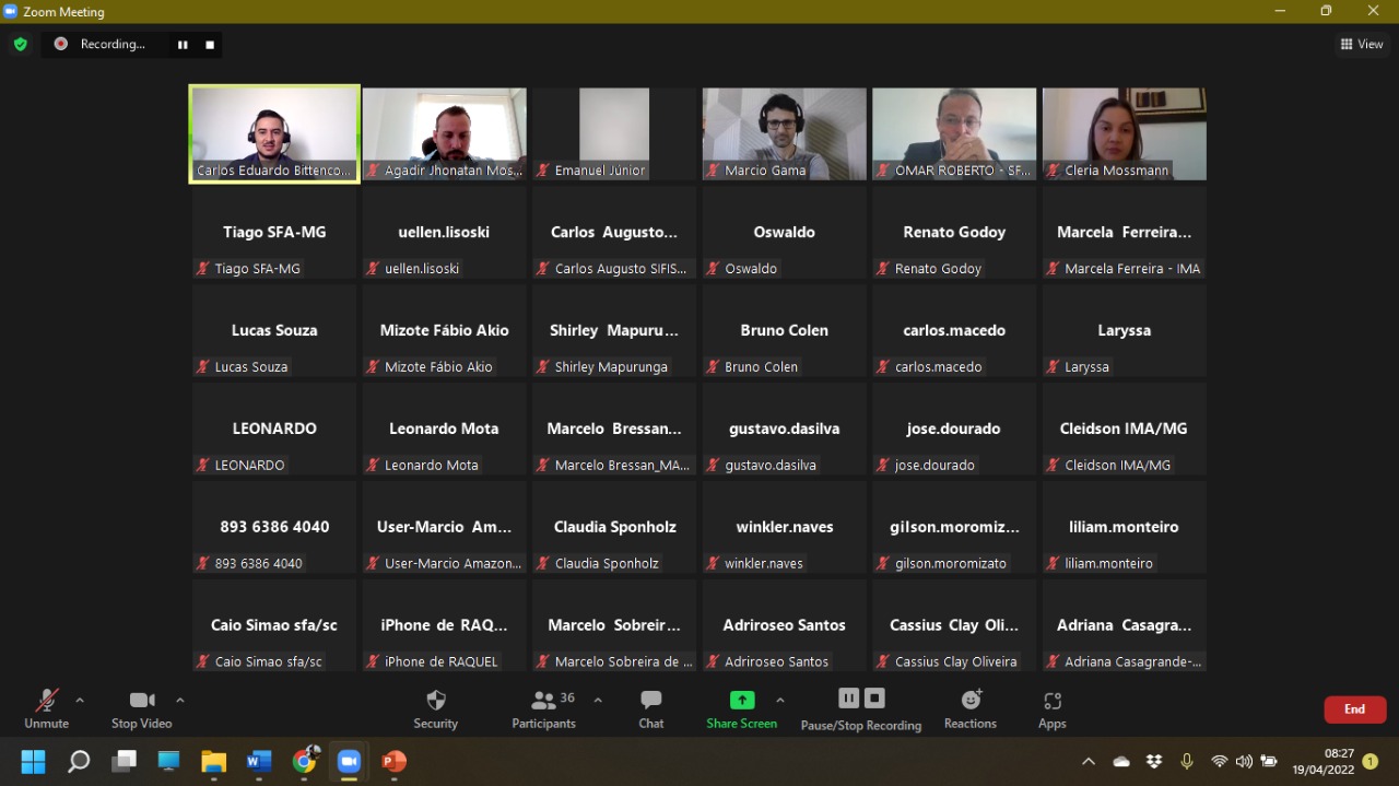 Mais de 30 agentes concluíram, nesta terça-feira (27), as aulas da primeira turma especial do Curso para Aplicações Aeroagrícolas Remotas (Caar) para fiscais do Ministério da Agricultura, Pecuária e Abastecimento (Mapa) em 22 Estados e de órgãos estaduais de Defesa Vegetal e Meio Ambiente de cinco unidades da Federação. O curso teve sete dias de aulas via web e foi ministrado pela Mossmann Assessoria e Consultoria Aeroagrícola, com apoio do Sindag, Ibravag e do Mapa.