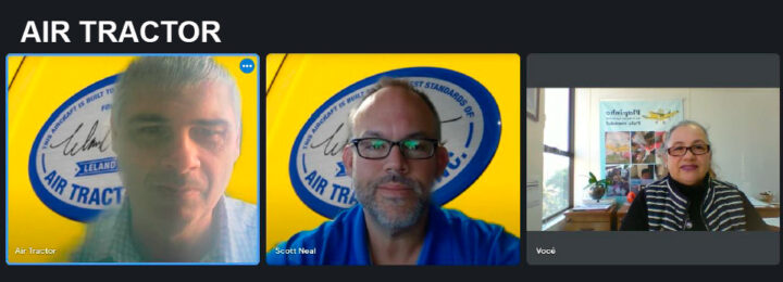 Pela Air Tractor e falando diretamente de Olney, Texas, o presidente da empresa, Jim Hirsch, agradeceu a dedicação da equipe do Sindag para fazer o evento acontecer. “Também somos gratos pela oportunidade de participar e esperamos que todos que assistiram às nossas palestras desta semana tenham apreciado e tirado proveito de seu conteúdo”, destacou o executivo norte-americano. Ele também ressaltou que a Air Tractor (maior fabricante mundial de aviões agrícolas) segue mantendo foco importante no Brasil. E deve continuar assim por muito tempo, “com aviões à disposição para ajudar a agricultura local”.