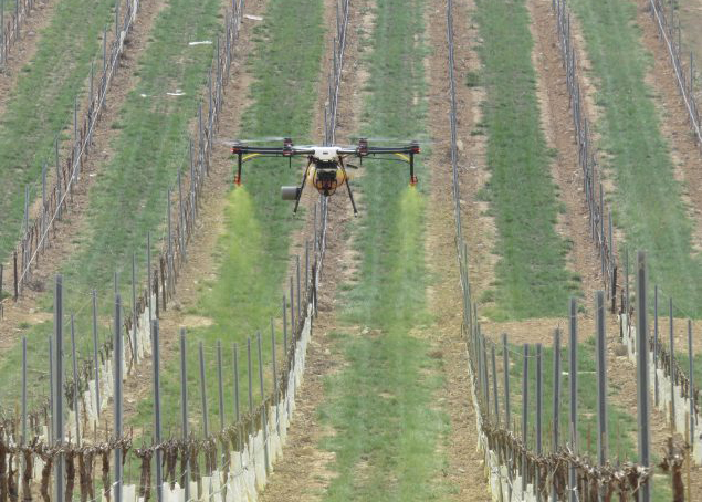 ESSENCIAL: aplicações aéreas com a ferramenta remota são estratégicas em um país com a meta de produzir mais tendo áreas rurais pequenas – foto: Instituto de Pesquisa da Catalunha IRTA
