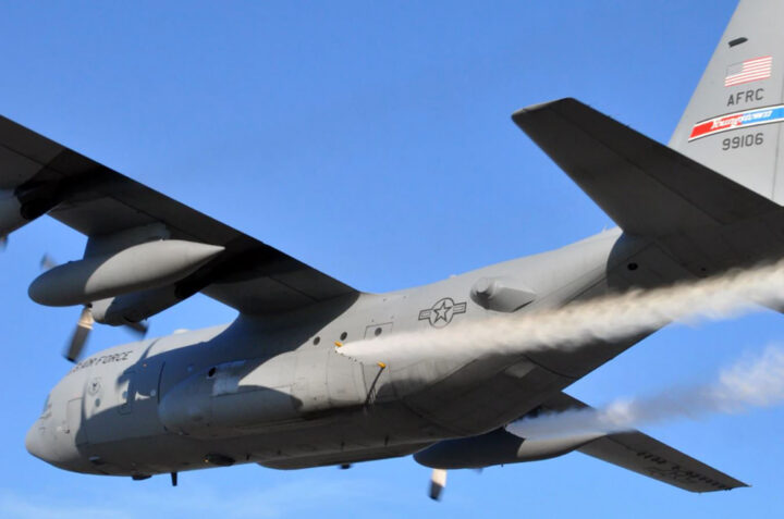 A 910ª Airlift Wing utiliza aeronaves Hércules C-130 em missões de pulverização contra mosquitos tanto no país quanto em missões de ajuda internacional – foto: USAF